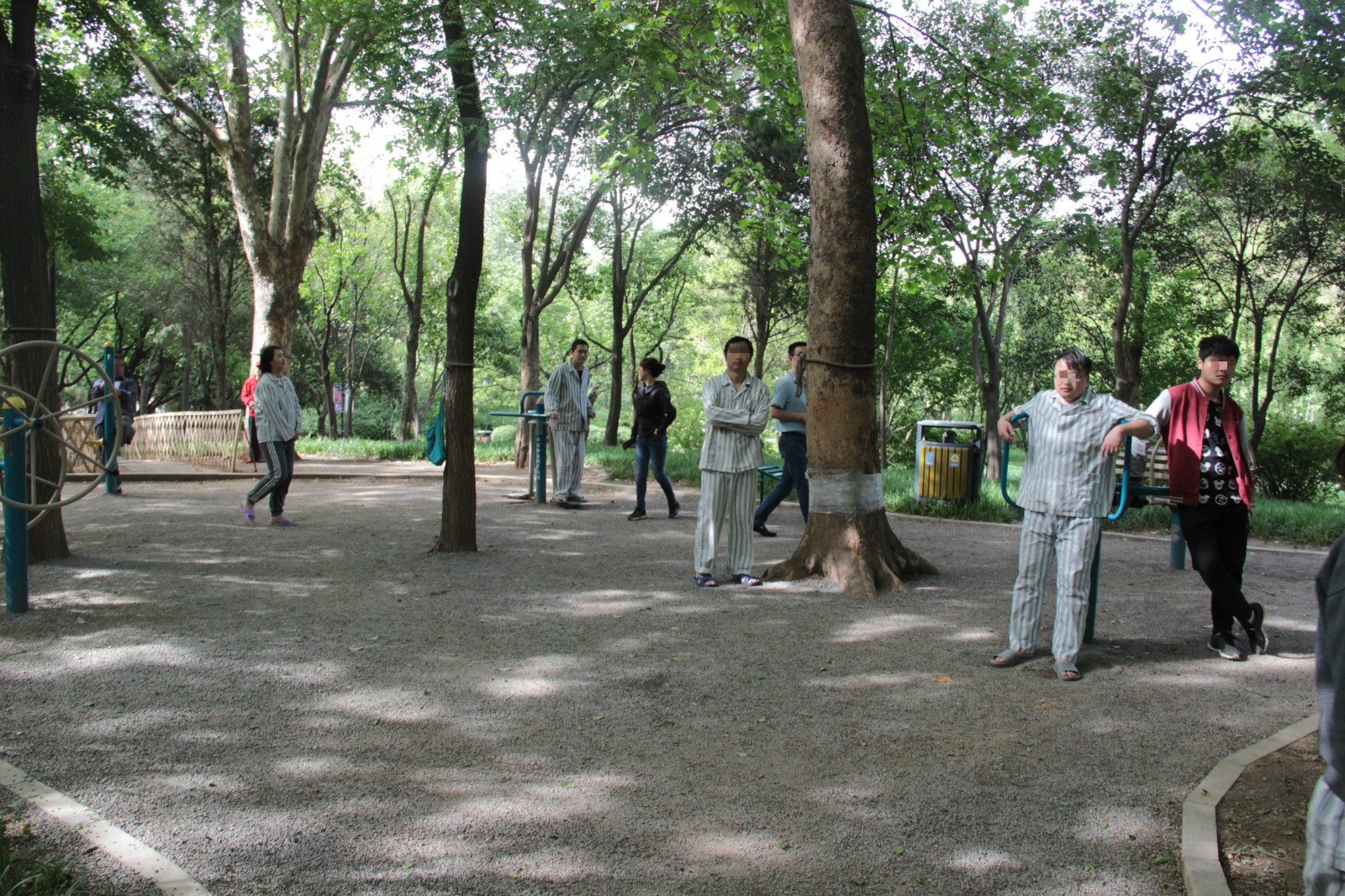 自由活动时间: 患者们在健身器材区锻炼身体