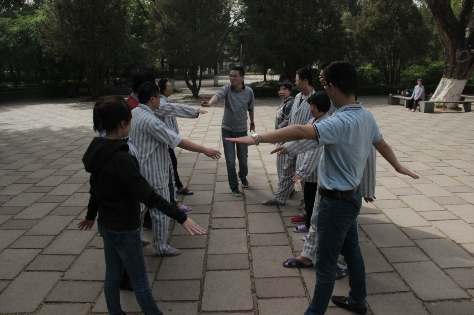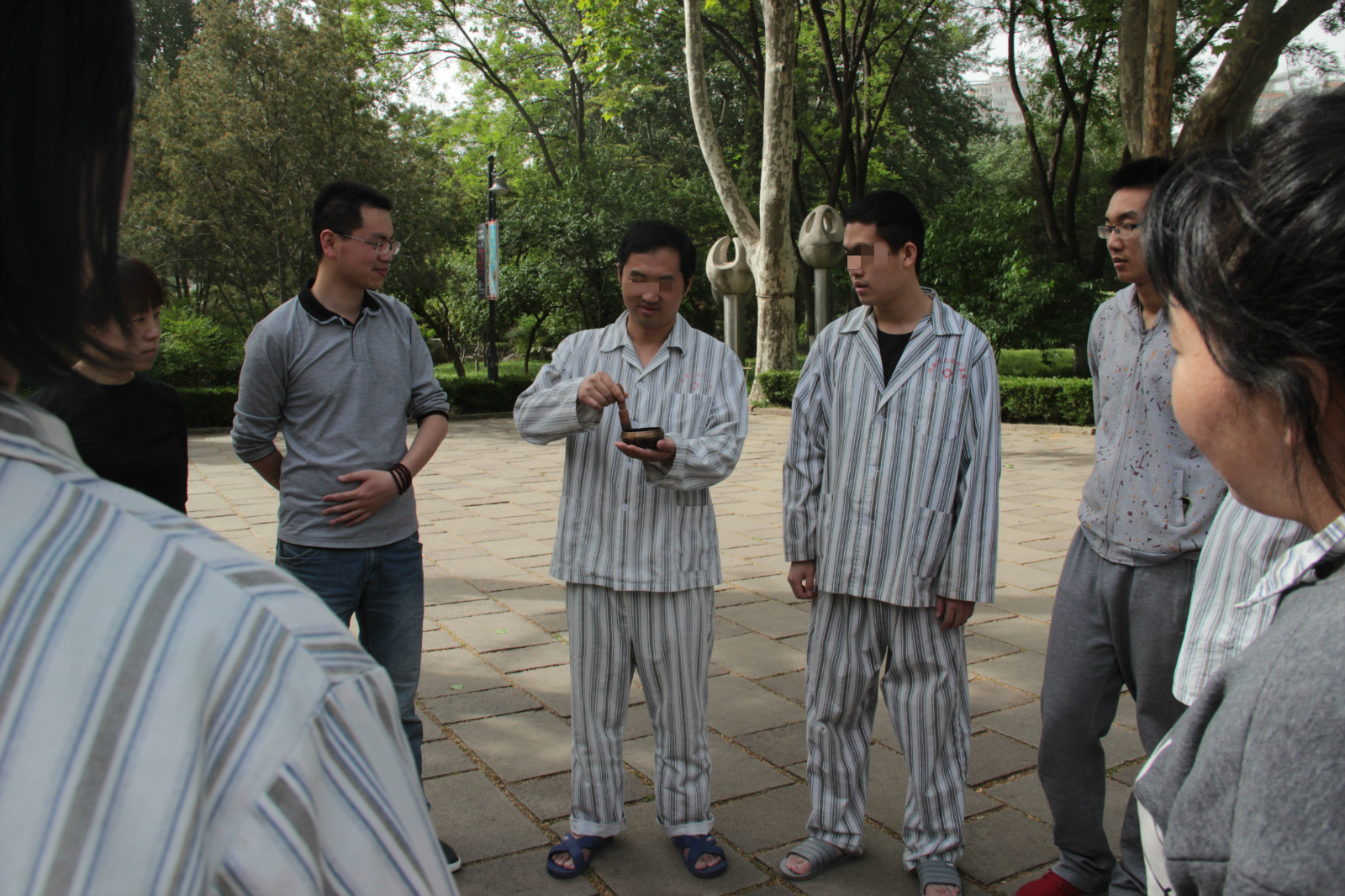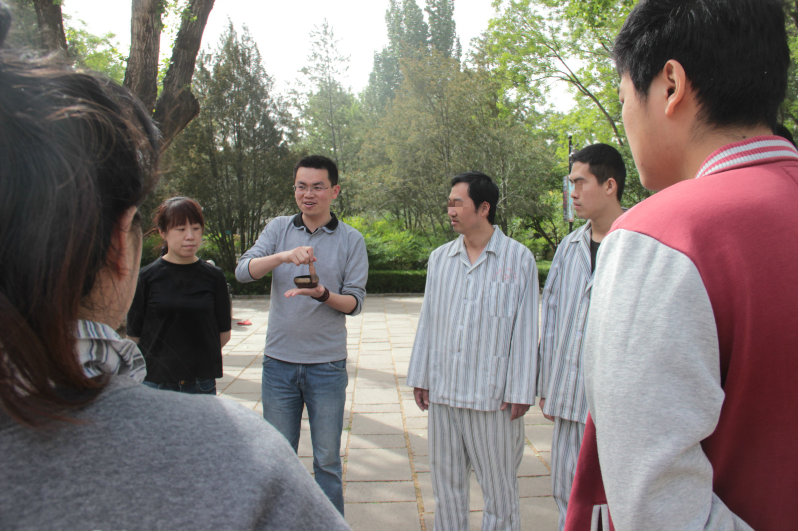 患者们在冯建鲁医生的带领下参加转钵活动