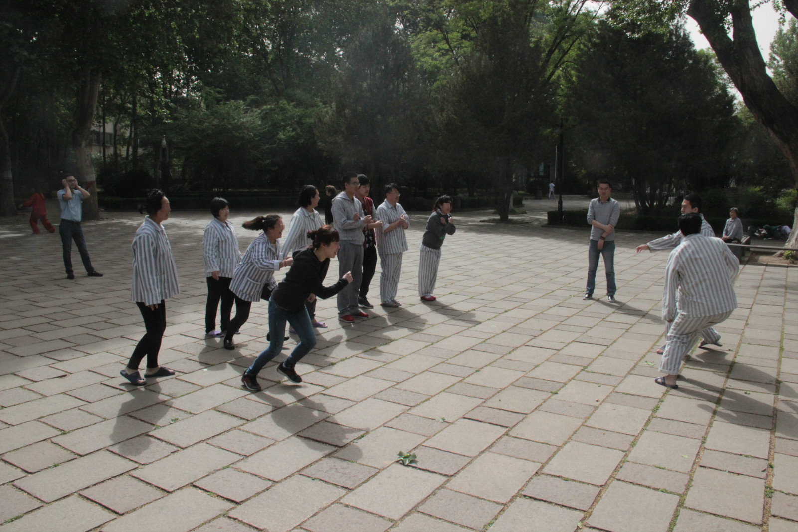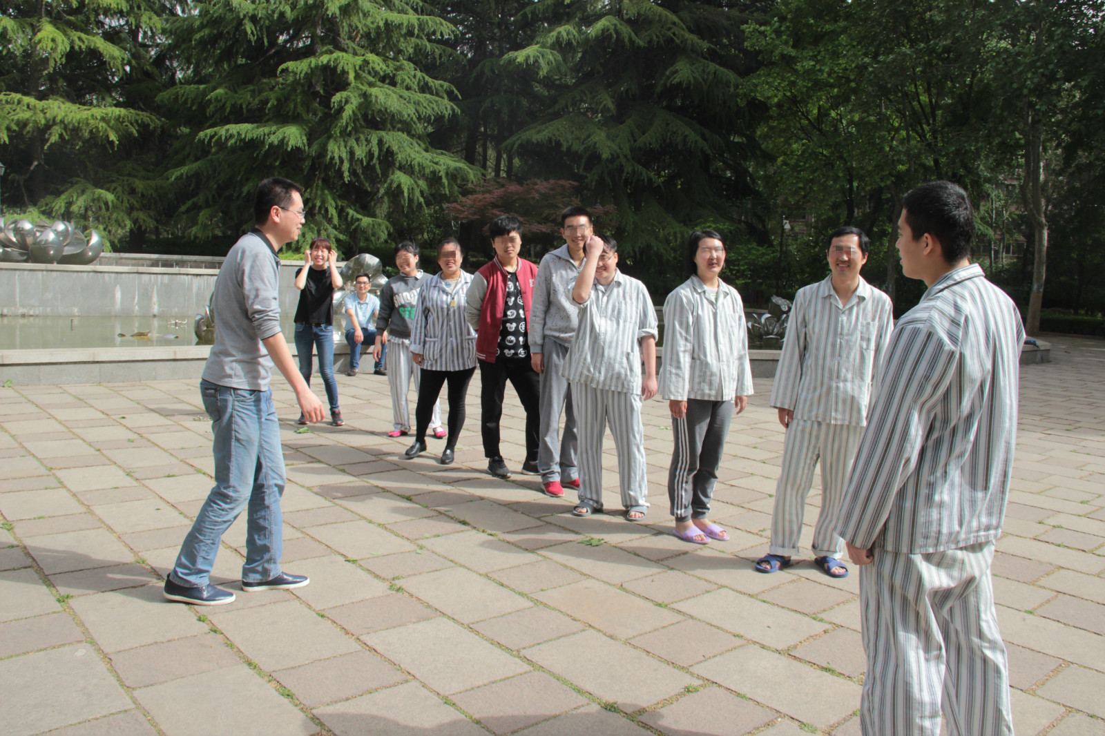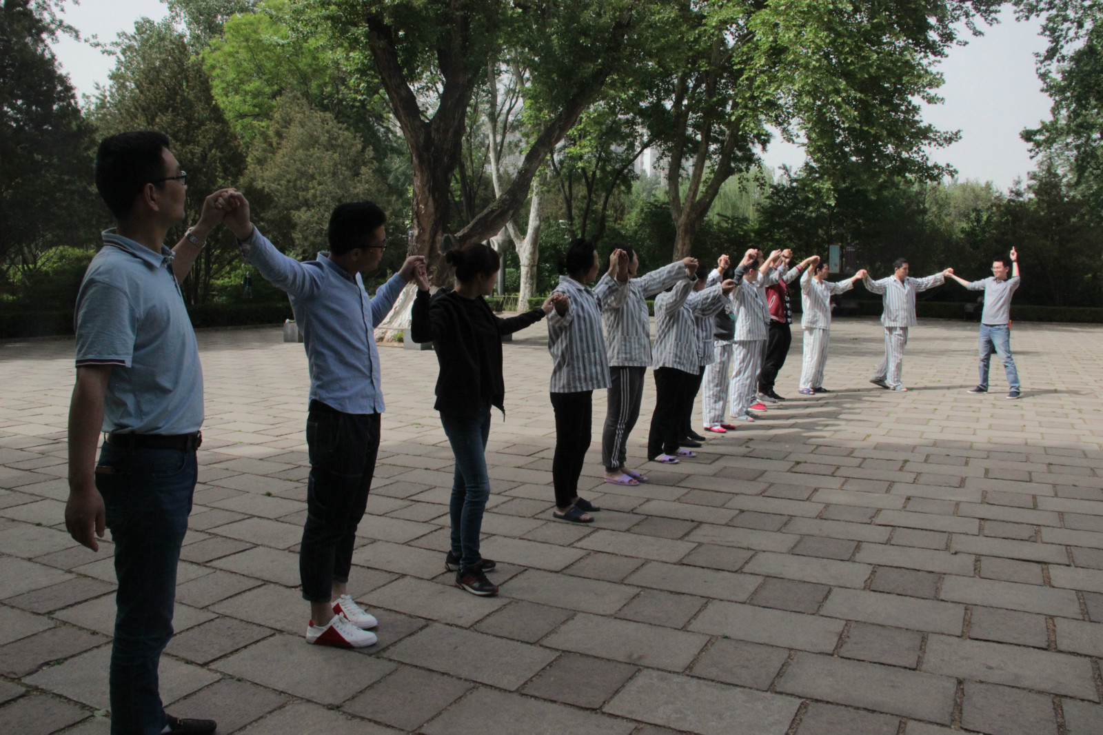 患者们在冯建鲁医生的带领下参加转钵活动